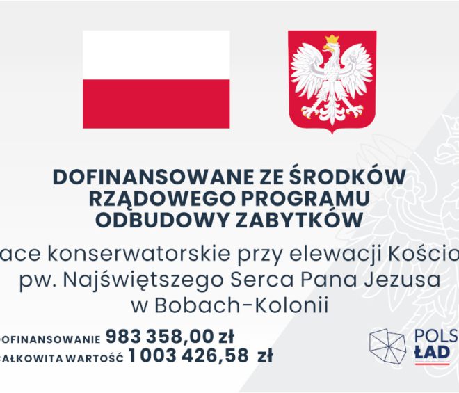 Prace konserwatorskie przy elewacji Kościoła pw. Najświętszego Serca Pana Jezusa w Bobach-Kolonii